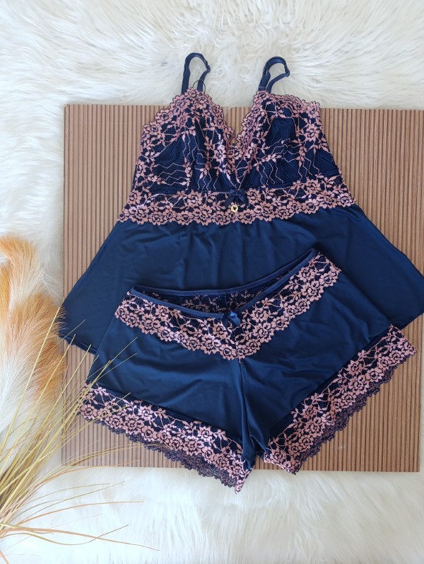 Short no tecido elegance e renda na barra do short e Finaliza a peça.