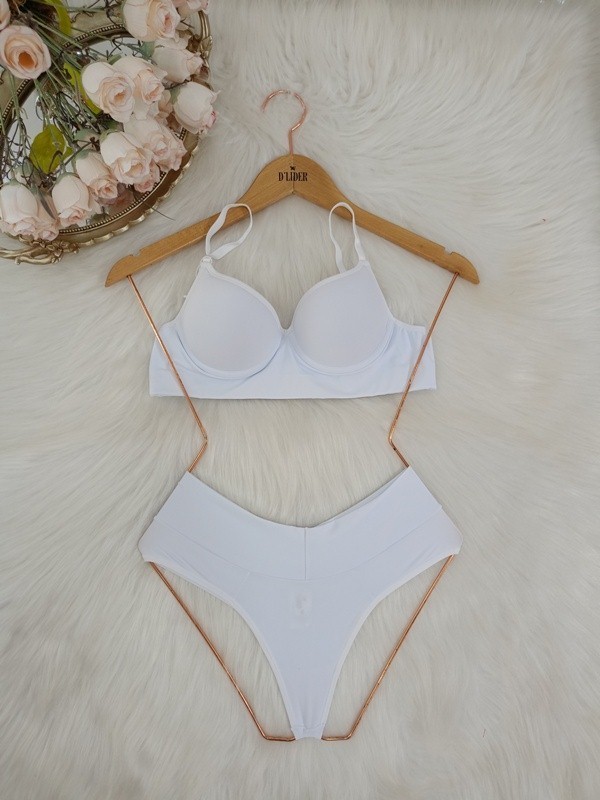 Sutiã com bojo coberto na micro fibra e arcos, no entre meio da base do sutiã micro fibra dupla). Alças , parte regulável atrás e laterais na micro fibra .